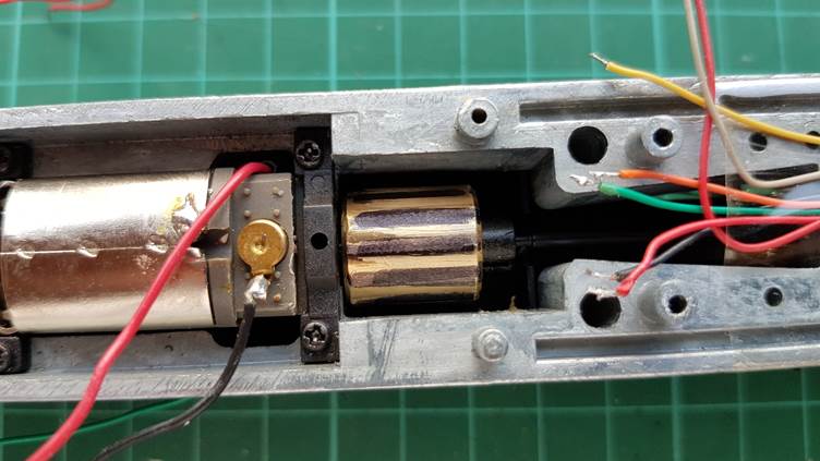 each bogie. The motor needs unscrewing for modifying so that its speed can be