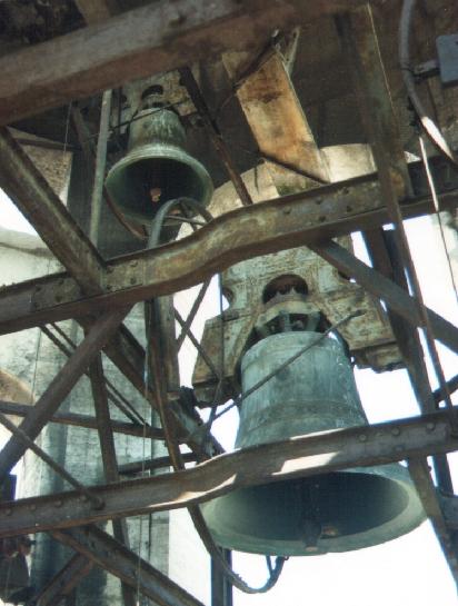 The bells were originally cast in 1931 by the Cavadini foundry of Verona and the original tenor cracked with one day left on the bell founder's 12 month guarantee! This was recast in 1934 with a slightly larger bell, and part of the tower around the trap door was removed so that it could be installed. The 1934 tenor then cracked in 2001, and has now been replaced by a new bell which weighs 4566kg (89-3-14). This was installed in the tower during 2003.